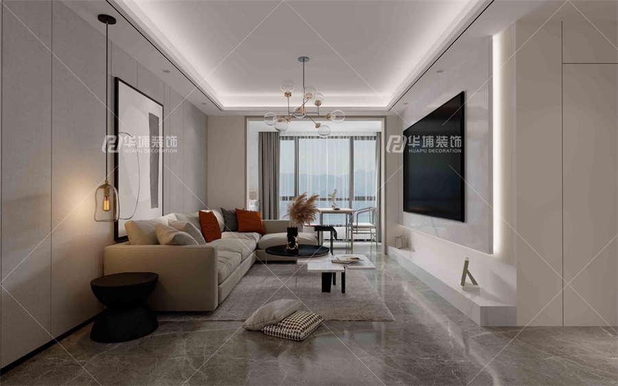 卡座設計到餐廳酒柜處,既美觀也節省了空間,而電視墻也結合了客戶喜好,通體大理石上放置投影看起來簡單大氣。在安靜的夜晚看一場二人電影,享受休閑時光。