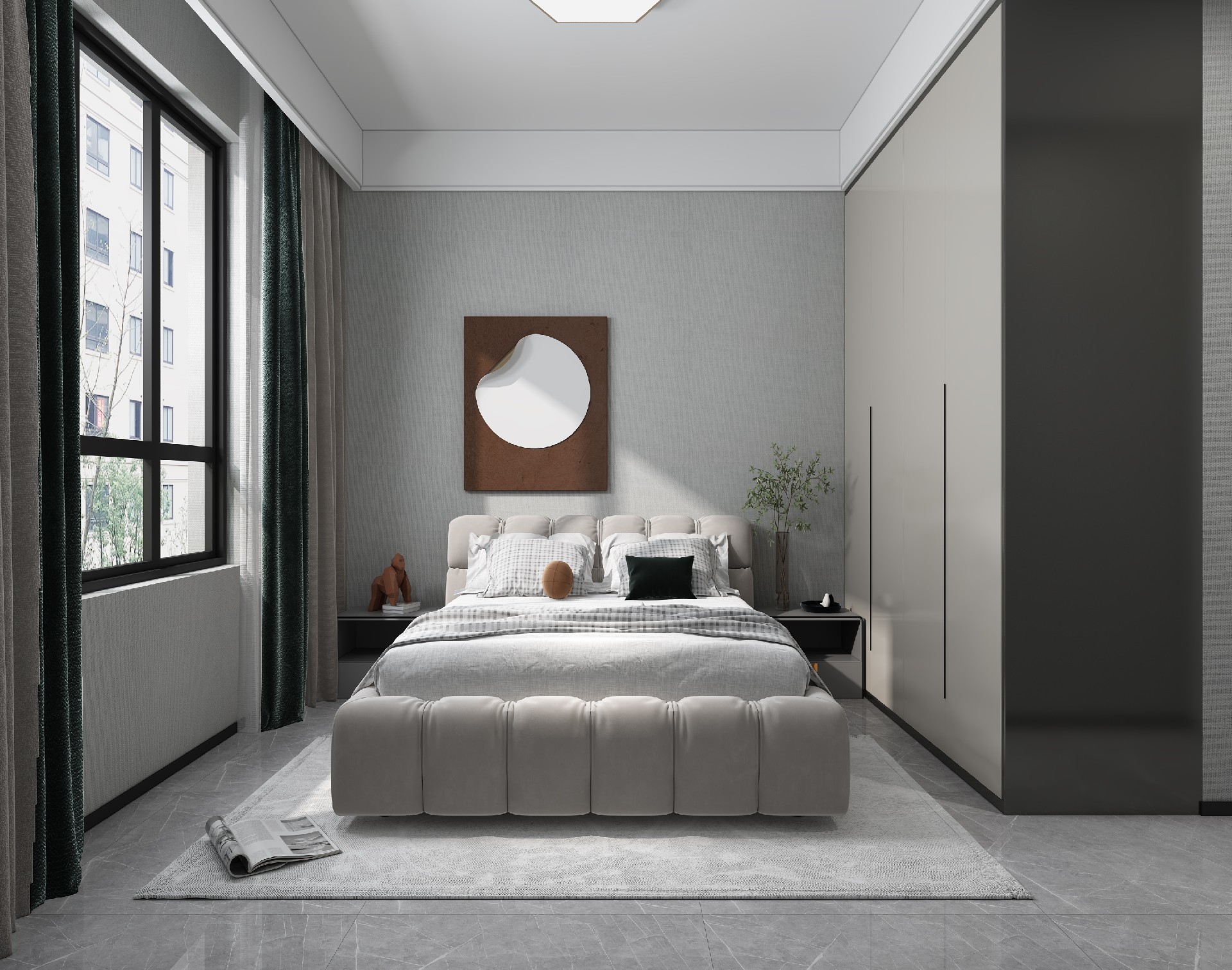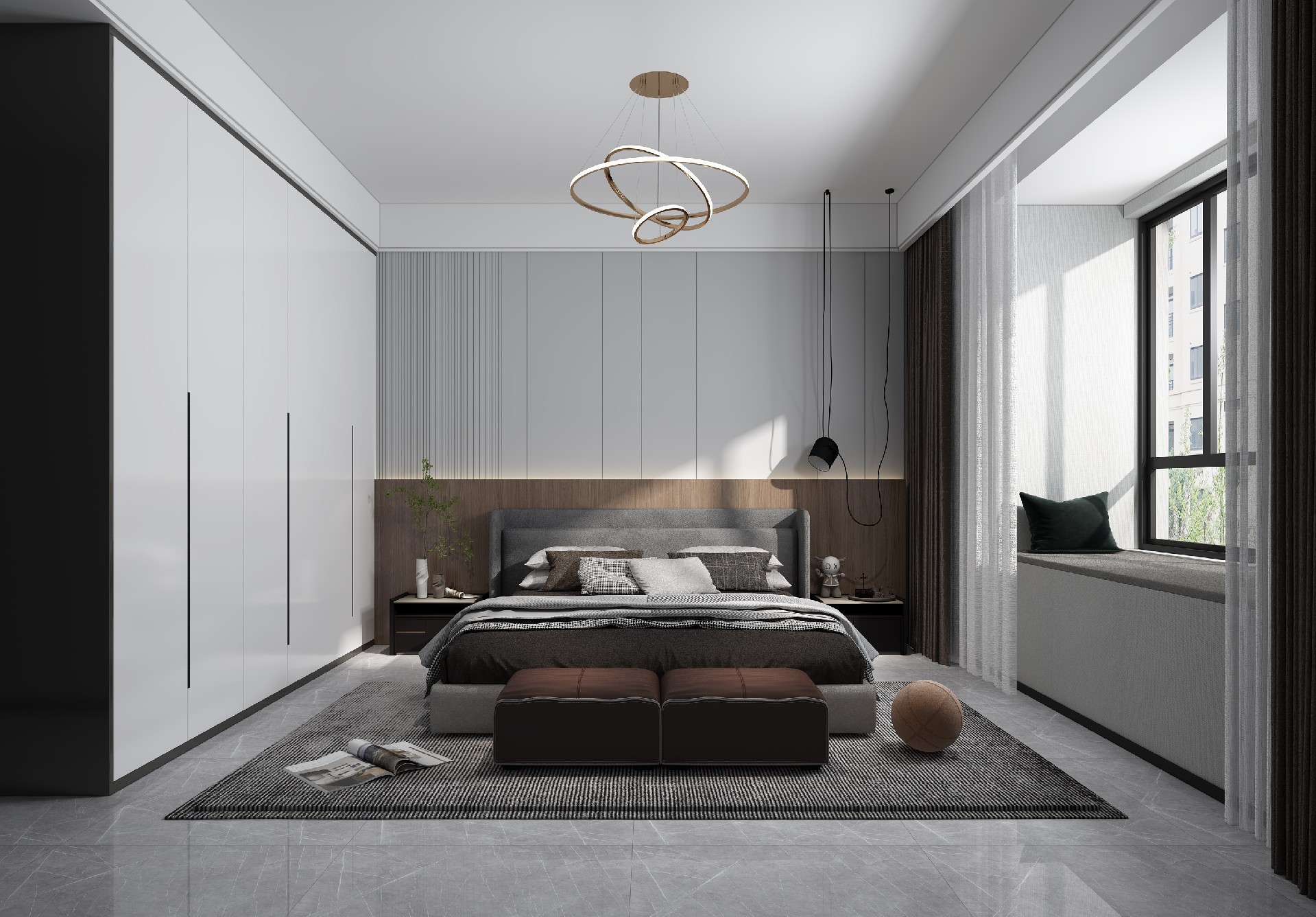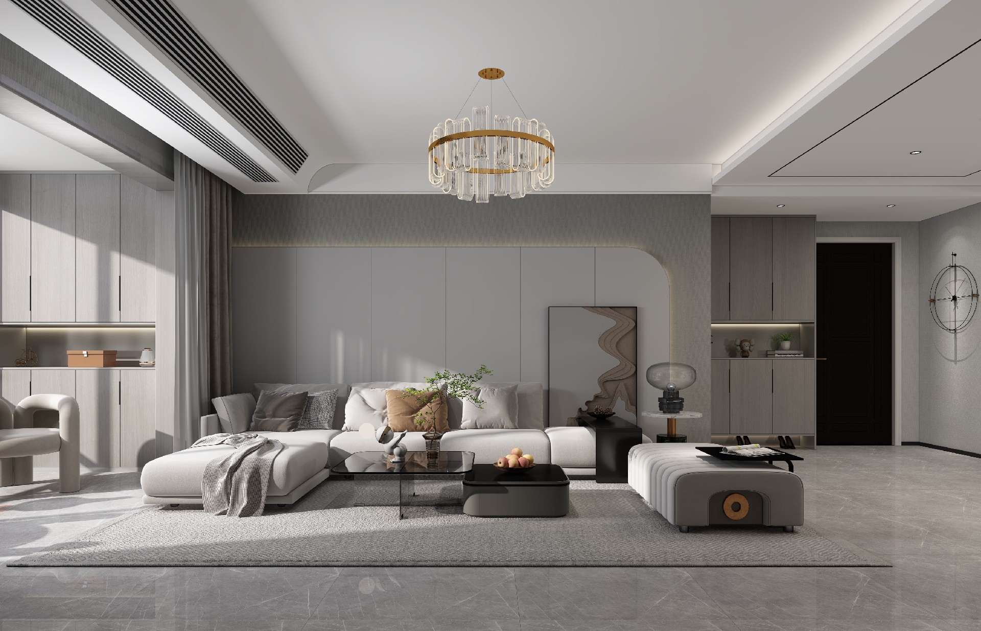 設計理念:整個案例以黑灰現代為主,遵循刪繁就簡的設計理念,以極簡的線條勾勒空間,達到視覺效果與居住舒適度的完美契合。