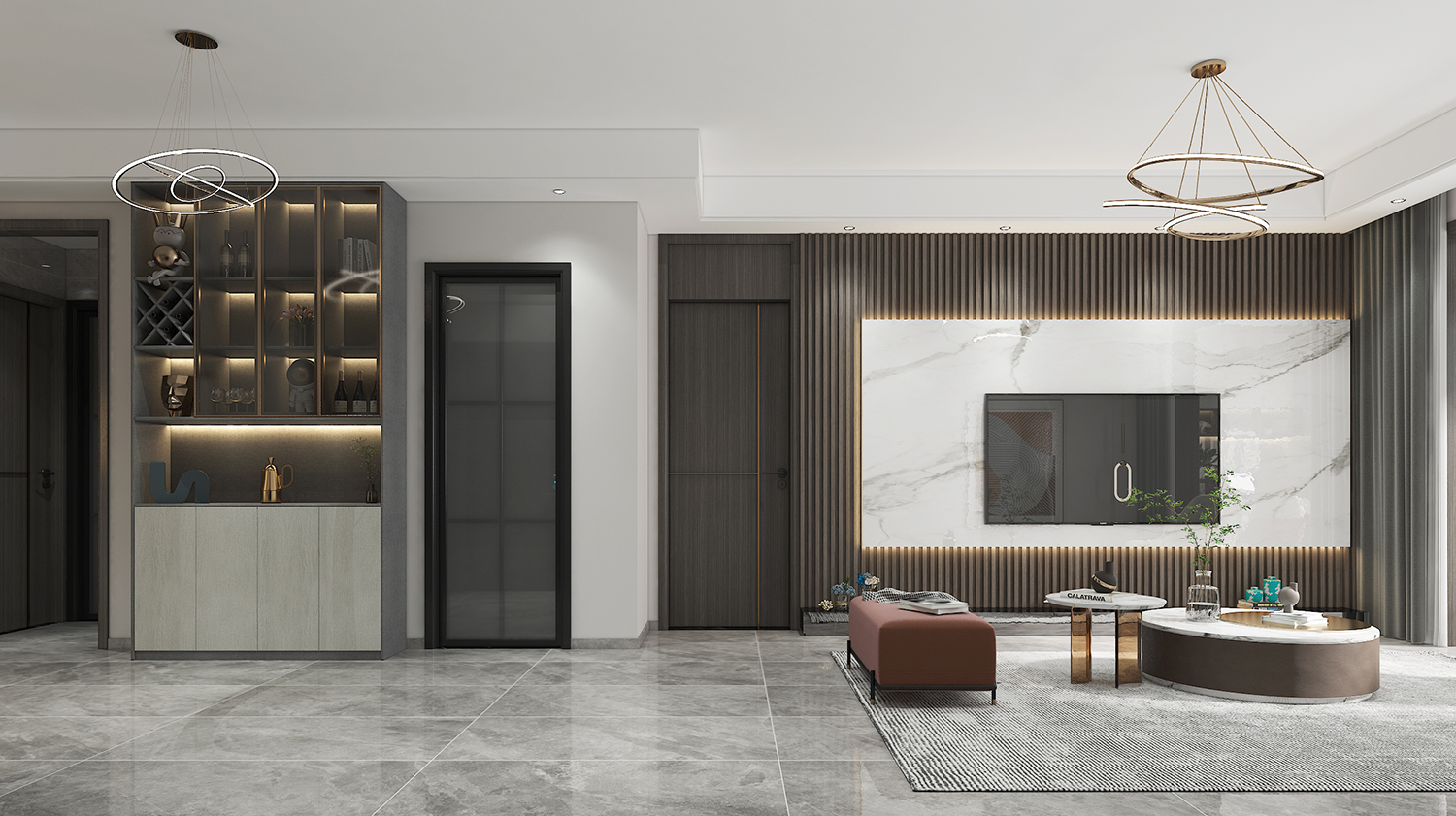 本案特點:追尋生活的品質,對氛圍要求較高,本案例采用現(xiàn)代風格結合墻板設計使空間能夠完美融合在一起,冷暖色調并用,低調而不失奢華,簡約而不簡單