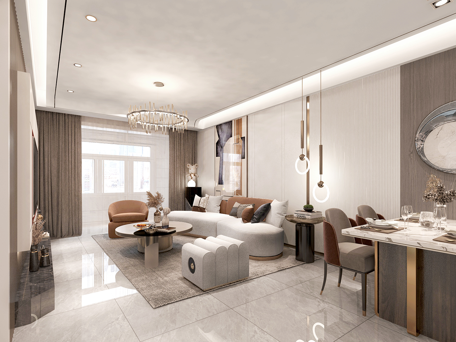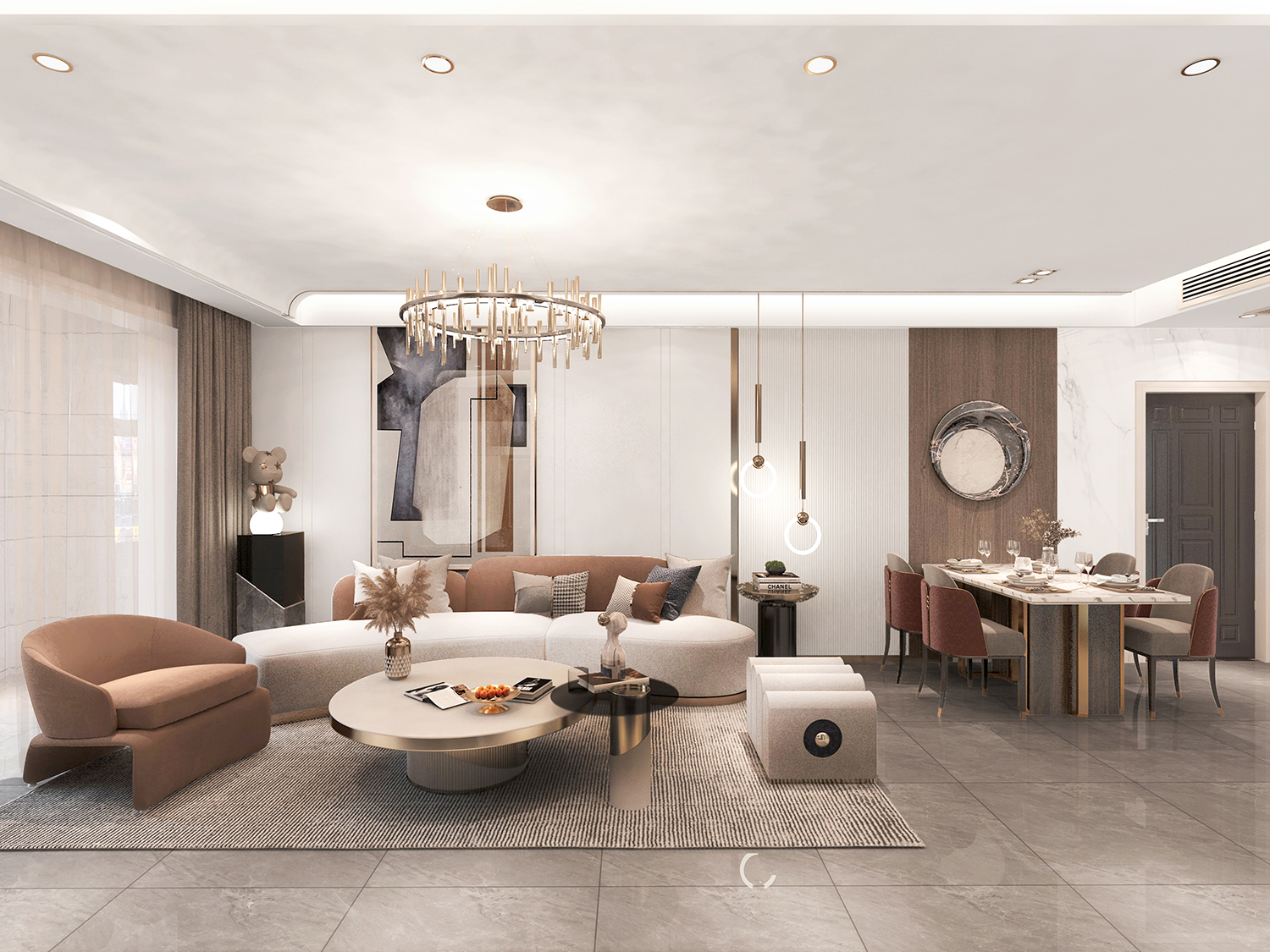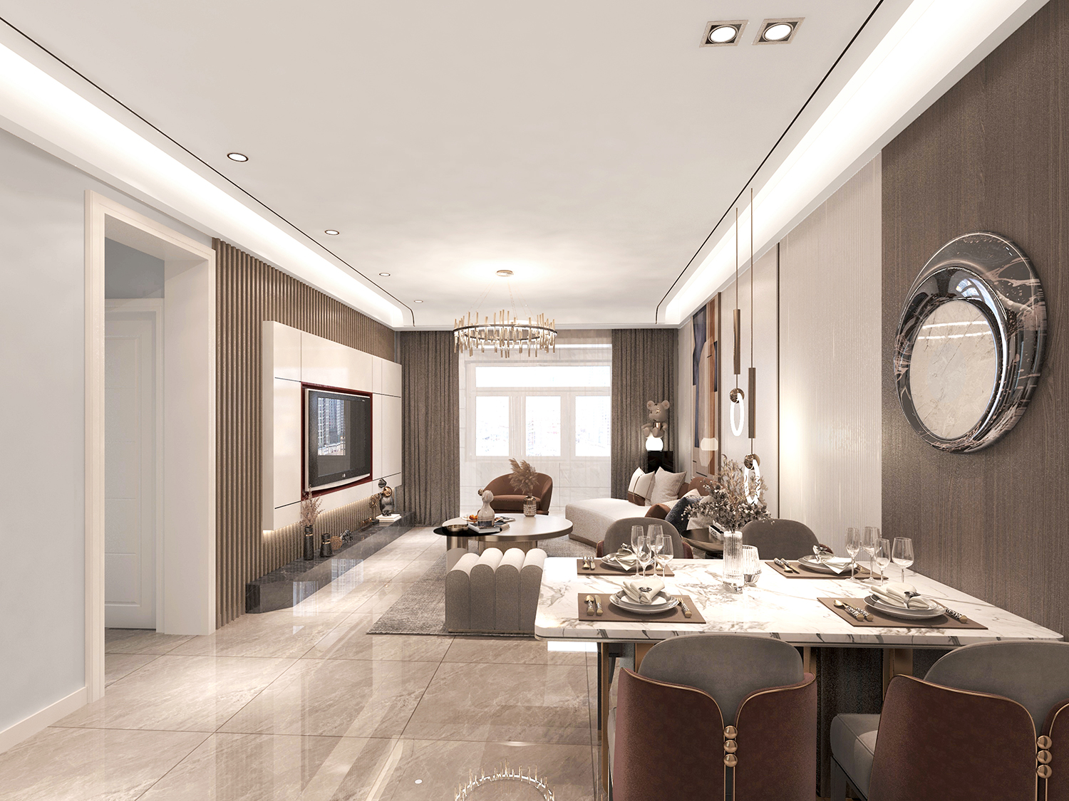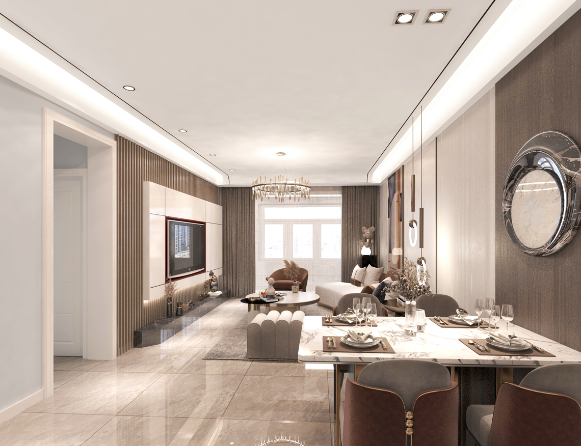 設計理念:輕是一種優雅的態度,低調舒適,但不損害高貴優雅;奢侈是一種既不讓人有壓力又追求品質和精致生活的狀態。輕奢風格主義,代表著"輕負擔高品質"的生活理念,提倡在力所能及的范圍內打造屬于自己的高品質低調奢華生活。它是一種對好生活的向往,注重人內心對自我品位升級的追求。本案在簡單明快的基礎上融入輕奢元素,將業主對生活的熱愛發揮的淋漓盡致