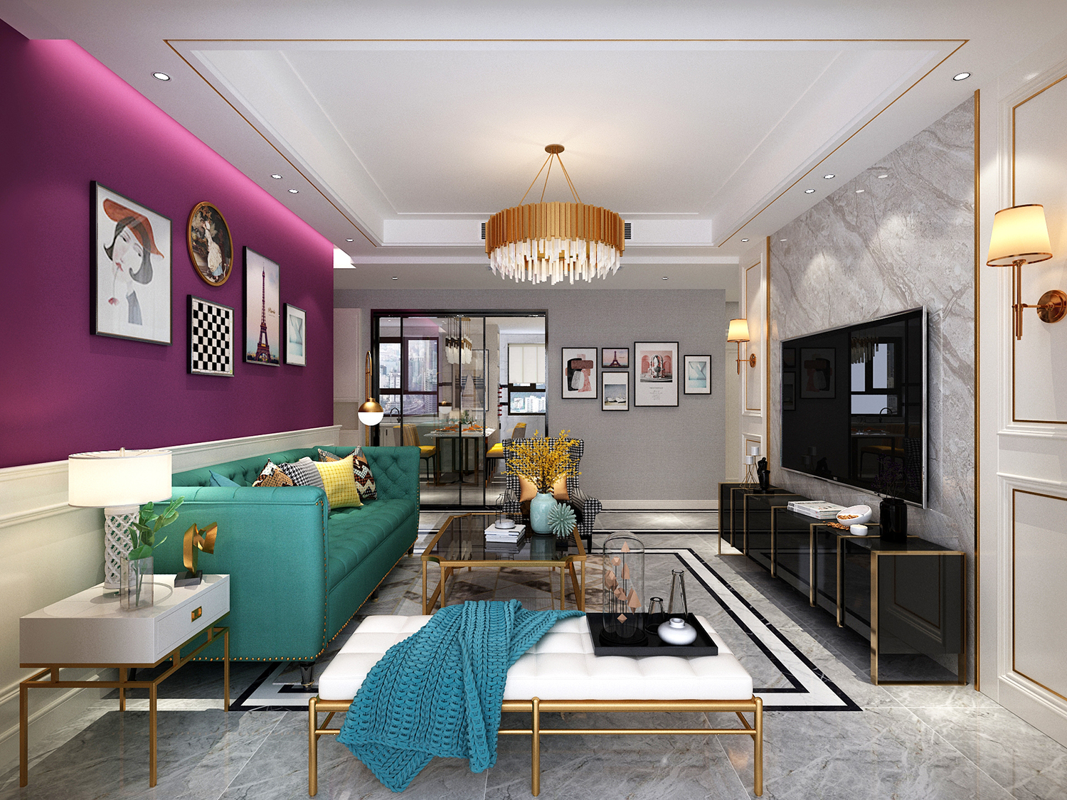 設計理念:本方案是圍繞現代輕奢為主題,業主三口之家居住,以簡潔明快的設計風格為主調,簡潔和實用是現代風格的基本特點。人們裝修時總希望在經濟、實用、舒適的同時,體現一定的文化品味。而簡約風格不僅注重居室的實用性,而且還體現出了現代社會生活的精致與個性,符合現代人的生活品位。全面考慮,在總體布局上方面盡量滿足業主生活的需求,亮麗的沙發墻面裝飾做為景點體現裝飾的與眾不同。