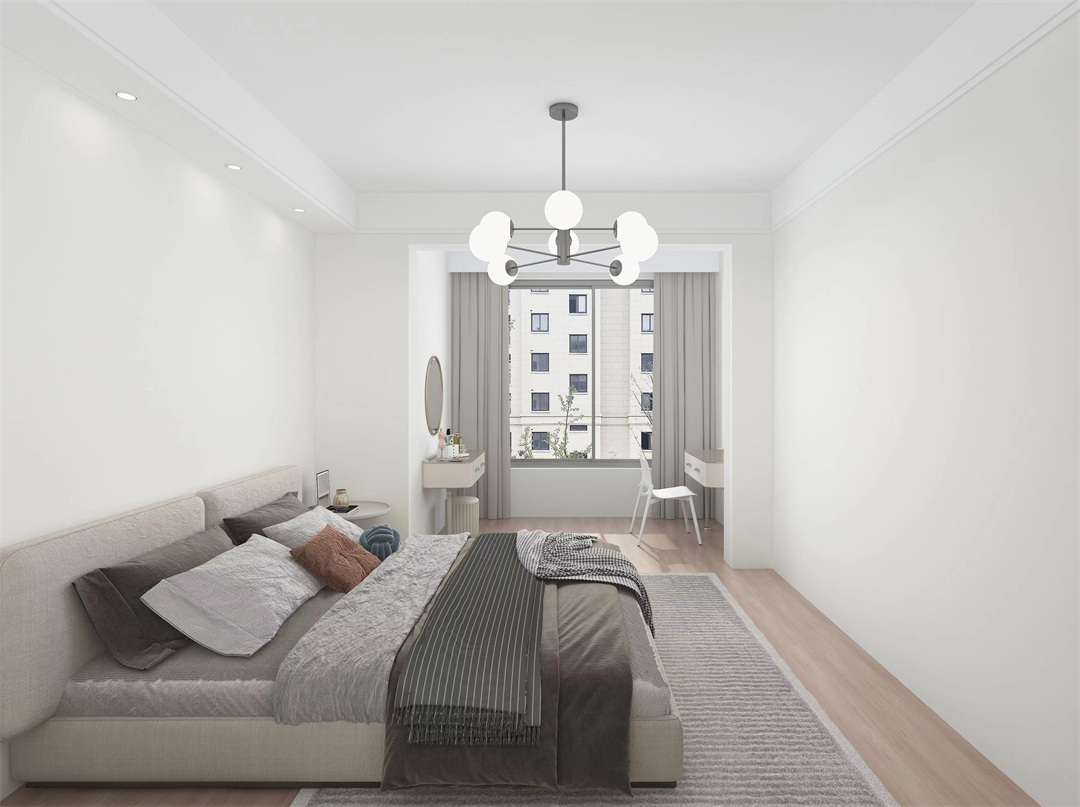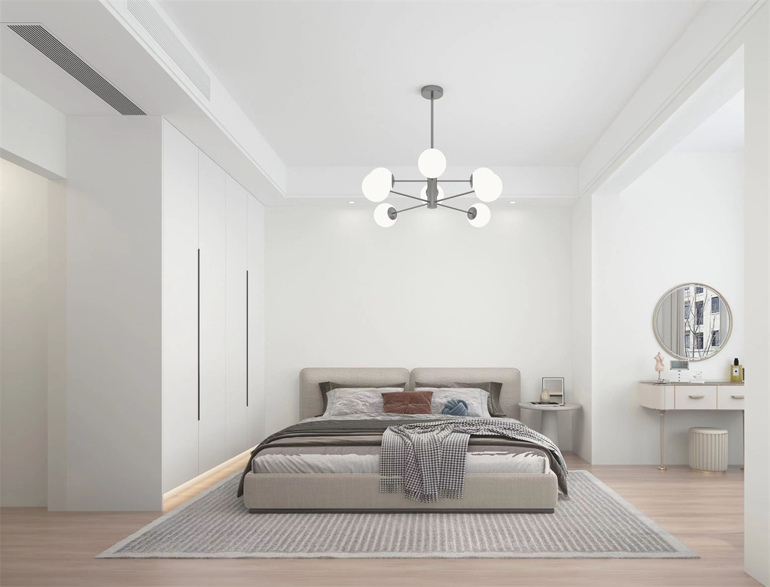 主臥將陽臺擴入,做梳妝臺,讓梳妝動線更加流暢,空間也得到了合理利用。