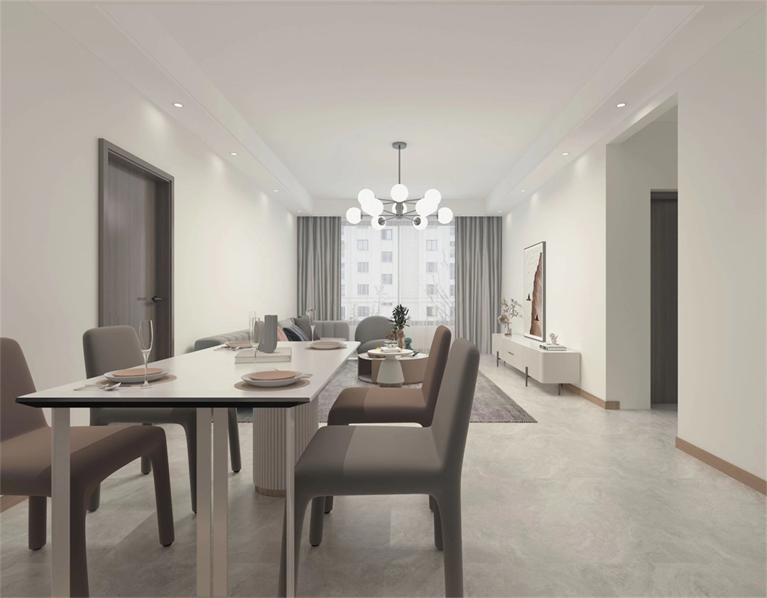 整案空間以灰白色為主,呈現素雅純凈的空間視覺。