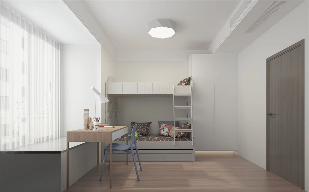 兒童房以上下鋪,將衣柜嵌入,增加功能的實用性。