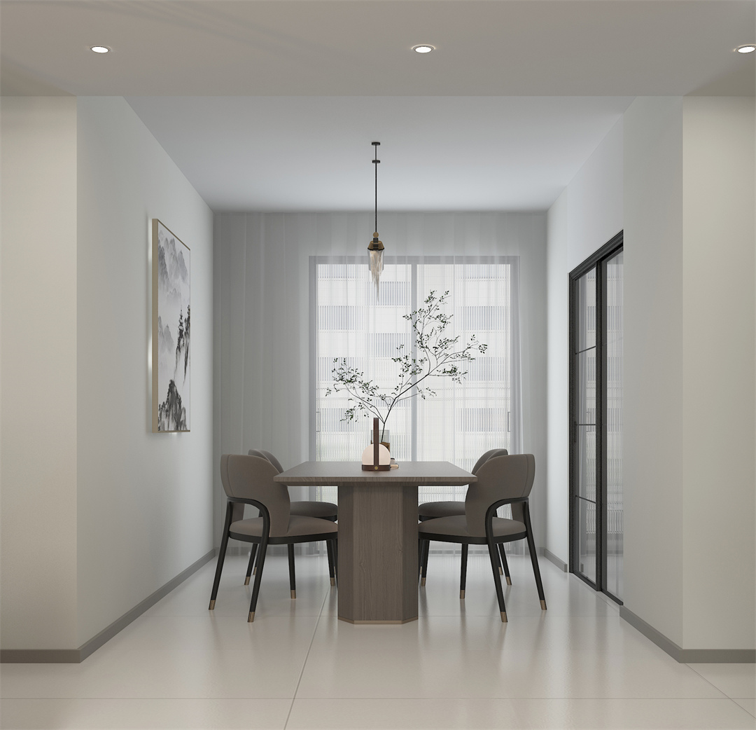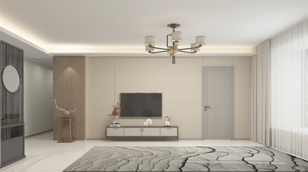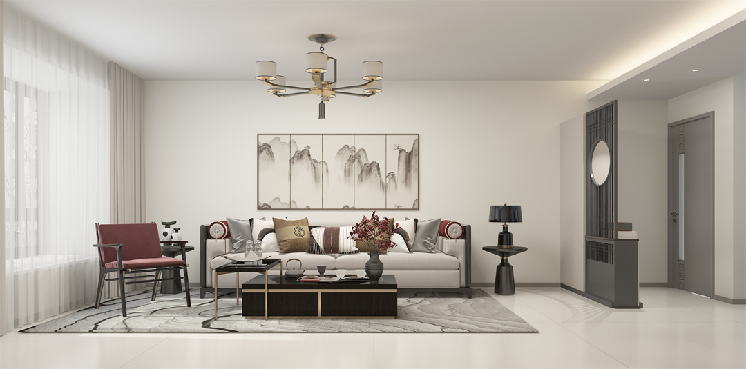 設計理念:本案定位新中式風格,著色清新自然,以現代融合中式山水元素,營造空間寫意的生活空間。