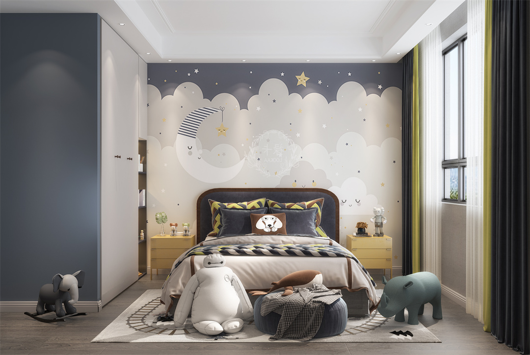兒童房的主要功能是睡眠和娛樂,此外還設有儲藏空間。兒童房的設計是依據兒童心理和年齡的特點,根據其個性和日常活動等布置,在細節上下工夫,為兒童創造一個溫馨、舒適、富有趣味的小天地。