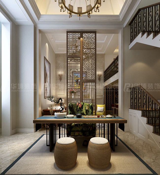 民安北郡400平復式美式風格會客區裝修效果圖