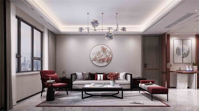 本案特點:進入玄關,是一個木質隔斷,劃分開玄關與客廳,在設計上,迂回的動線能在行徑間感受房間所帶來的愉悅,更加飽滿。客廳采取石材與護墻板的結合在保障客廳空間感的同時不失品質,與墻面的法式掛畫相得益彰,無形契合;木質隔斷使視覺得到延伸,通透感更強,不會有山窮水盡的感覺。