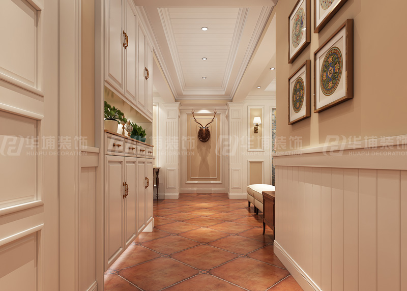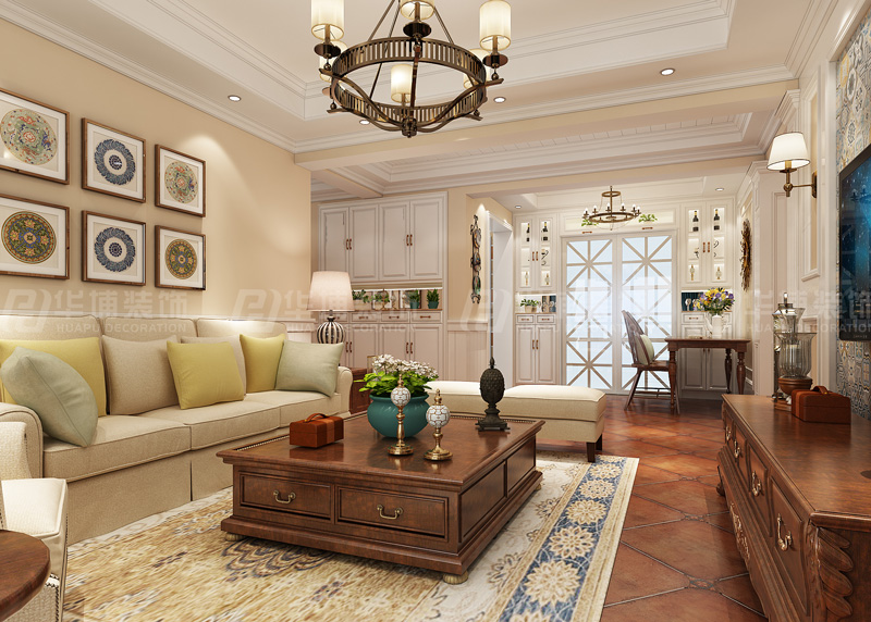 設計理念:因為戶型面積和采光原因本風格區別于傳統美式色彩上厚重的深色系 采用了大地色 米黃色 暖白色