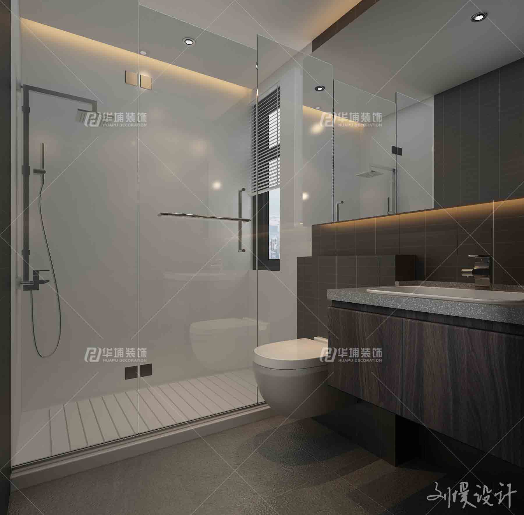 衛生間的磚黑白強烈對比深化了現代黑白灰的主題性