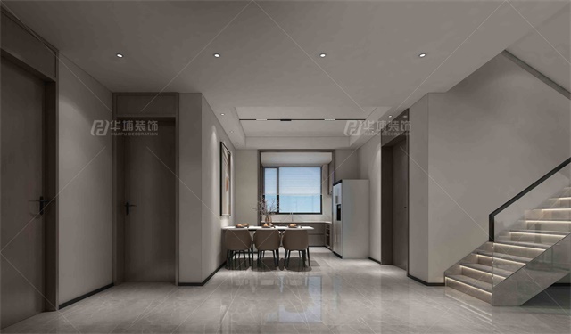 整個(gè)公共空間盡可能的簡單,地面通鋪的灰色大地磚是空間更加沉穩(wěn)、通透。