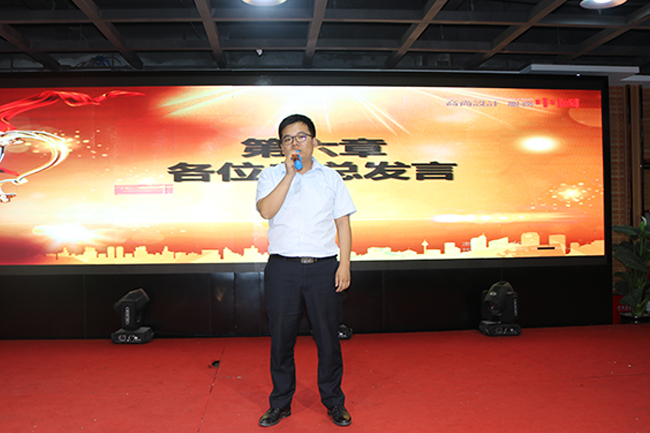 下半場是我們每月一度的員工動員大會,由企劃部經理岳連峰主持,干凈明快的風格,恰如其分地迎合了我們快速高效服務客戶的理念。