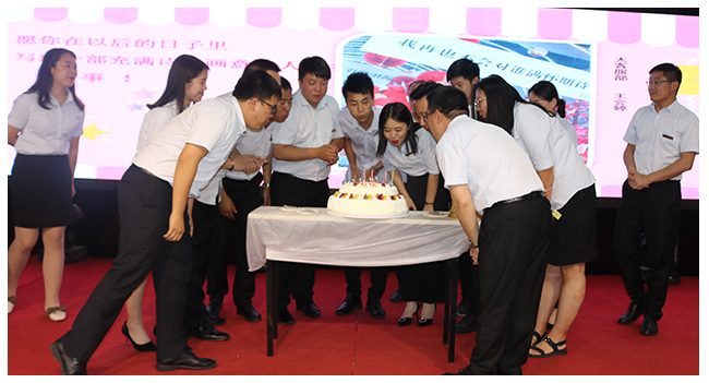 緊張嚴肅的動員之后,開始了每月一度的溫馨環節——員工生日會。用一份真誠的祝福,一句“生日快樂”的暖唱,為我們的家人祈福,愿其健康成長、快樂生活,我們一起在華埔找尋更好的自己!