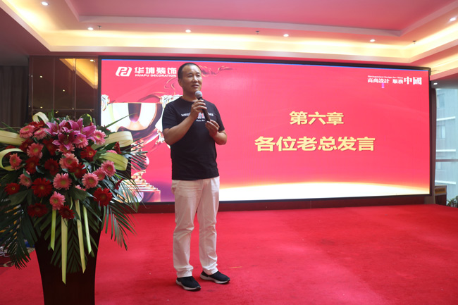 華埔裝飾集團董事長張革命、執行總裁賈玉彩、公裝公司總經理焦海濤、財務總監卜彥勛、家裝公司總經理曾憲浩、家裝公司市場營銷副總劉瑞南、家裝公司設計營銷副總朱燕麗先后發言,進行半年度總結,并對下半年工作進行規劃和部署。