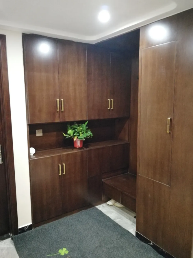 (1)打掉客衛(wèi)改造入戶門廳,兼容衣帽間和鞋柜;