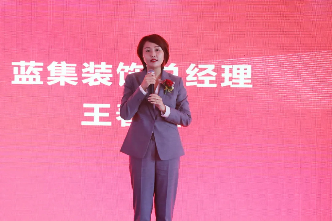 華埔裝飾集團執行總裁賈玉彩女士向來賓分享了華埔裝飾集團與藍集裝飾。華埔裝飾集團是一家集家裝、公裝、軟裝、高端多元化并行發展的一站式家裝公司,藍集裝飾則更加專注高端領域。此次聯合,是為了匯集更強大的華埔,未來可期,一起乘風破浪。