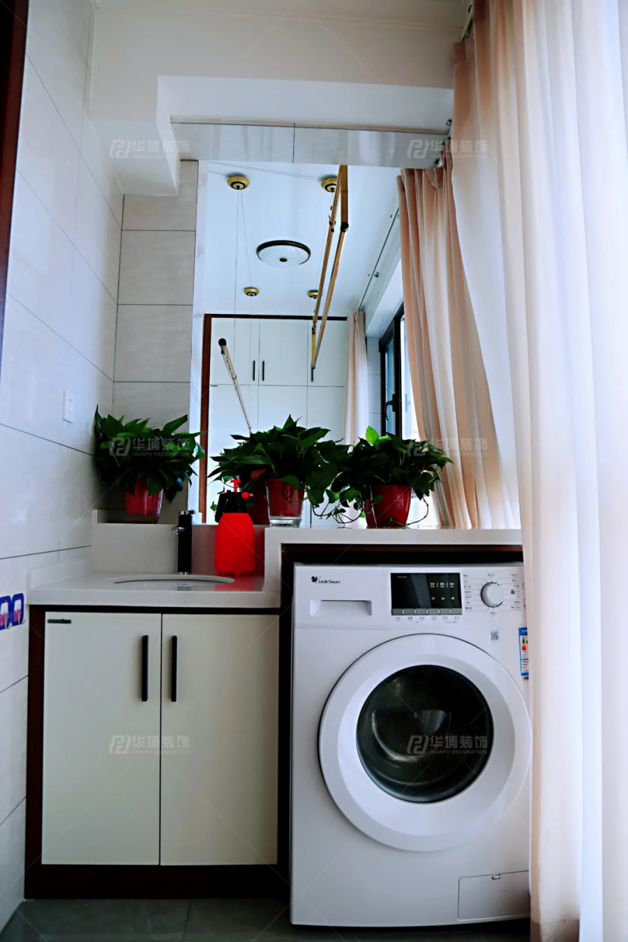 生活的小確幸,都來自細節的雕刻??蛷d陽臺做了洗衣晾曬,還加了操作臺的設計,方便擱置物品,很用心。