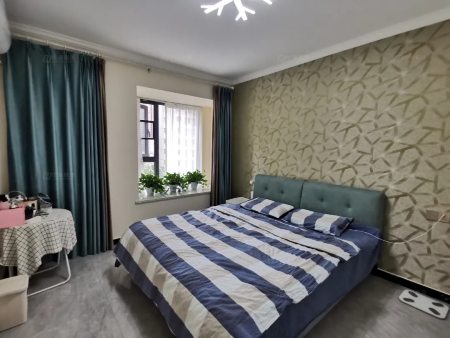 主臥沒有那么強烈的色彩差,不同尺度的綠色、藍色在同一空間里呈現,淡然而有詩意。