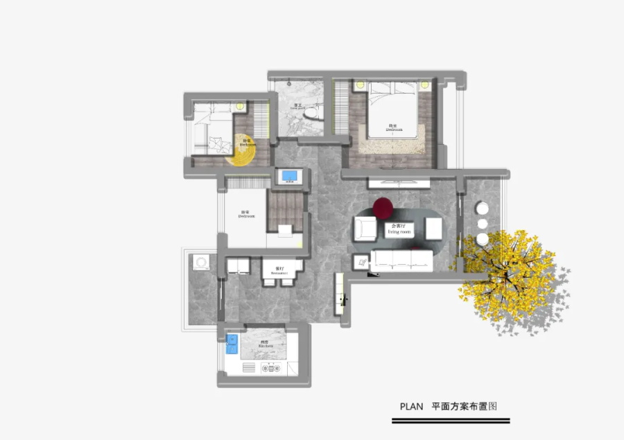 業主家常住人口三人,有一個6歲的小朋友,對空間的要求是多儲物、采光好、通風順暢。設計師著色整個空間,以灰白黑定下沉穩靜謐的生活基調,簡單的造型加持,留白的藝術空間,讓生活多一些期許。