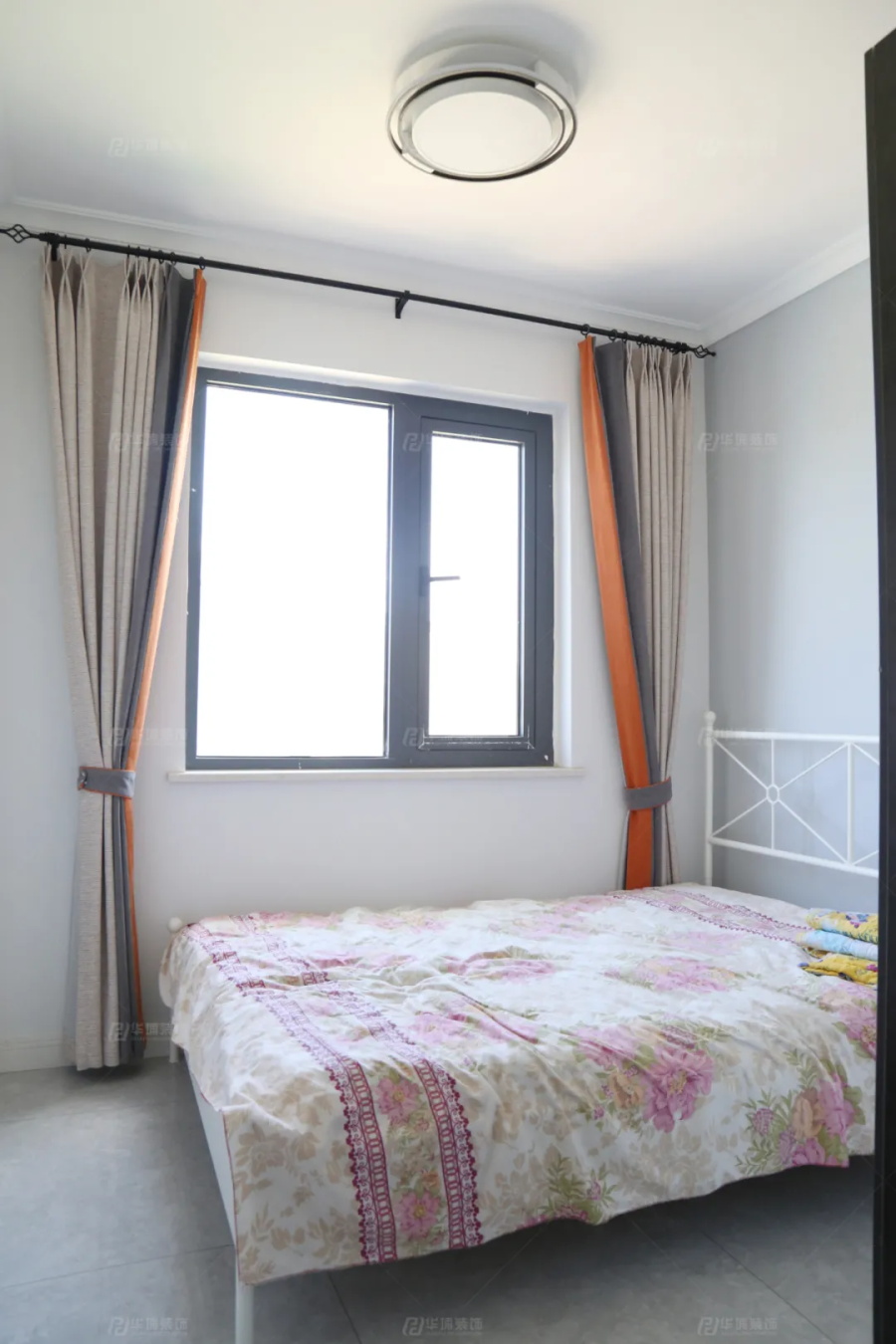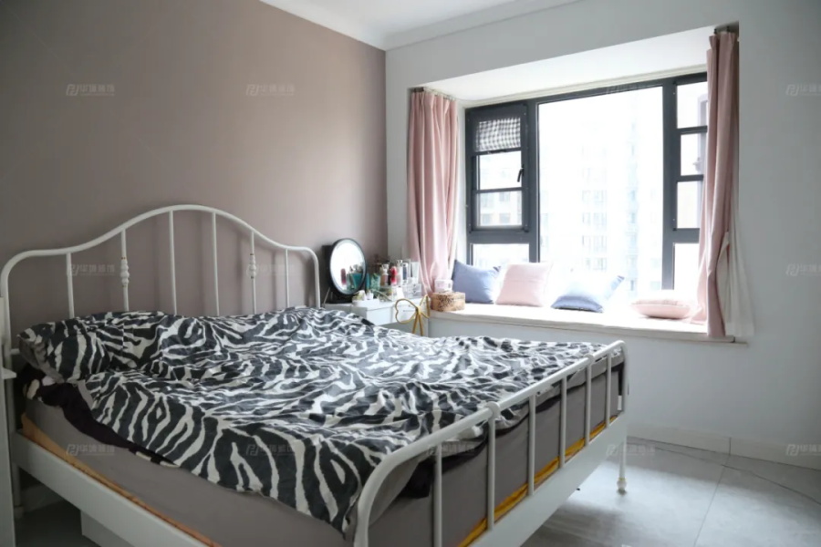 主臥以白色+煙灰色為主,鐵藝的雙人床,頂天立地的衣柜,敞亮的飄窗,承載生活的點滴溫情。