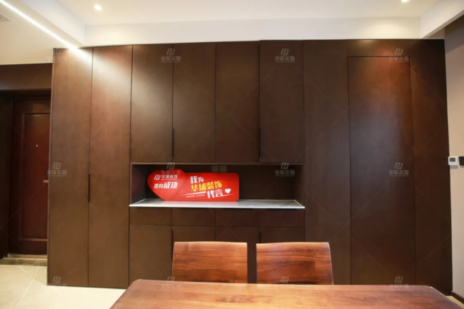 業主郭老師起初對風格的定位不太明晰,喜歡新中式,但又覺得軟飾繁雜。后來設計師實地考察了郭老師喜歡的樣板間,再結合其需求,定位現代風格,以整木定制詮釋空間。