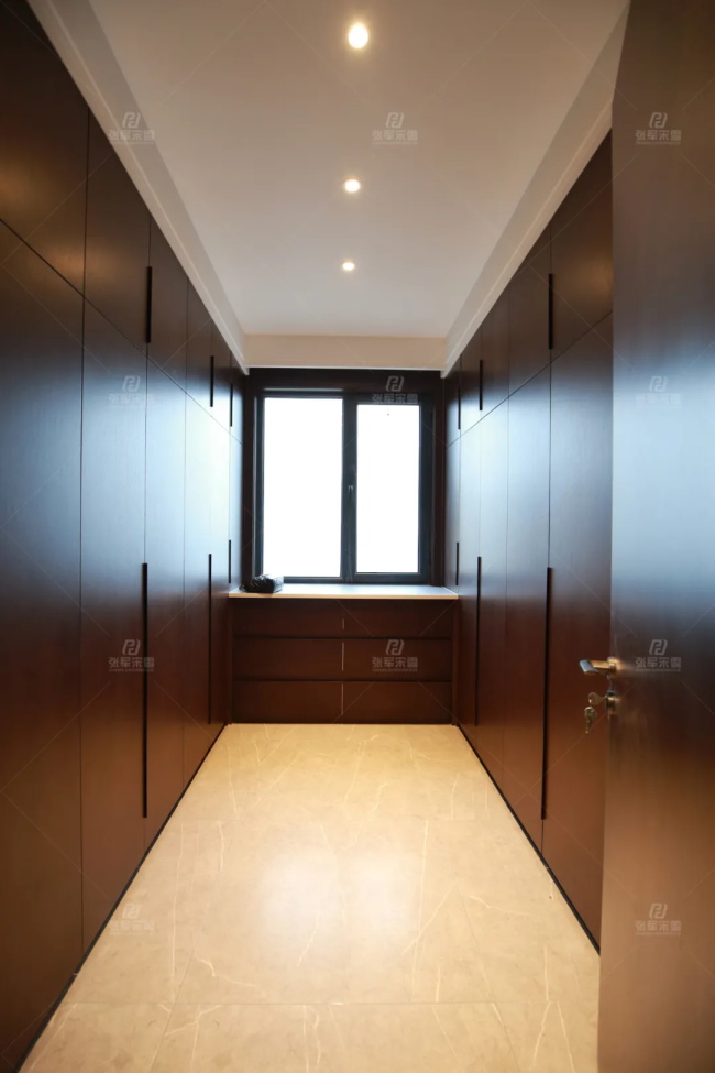 衣帽間整木定制,忠于空間的本質功能,將純粹的現代質感彰顯。