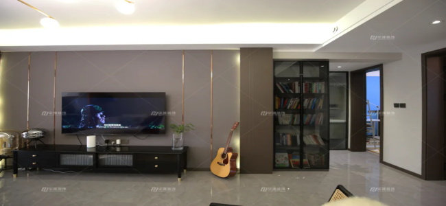 這是一個充滿文化熏陶的家庭,太太鐘愛吉他,孩子熱愛繪畫,梁老師喜歡讀書。所以在整案風格的定位中,他們有很多自己的想法和需求在,再結合設計師的獨到見解,最終以港式后現代風格呈現,輕度的奢侈,低調的奢華。