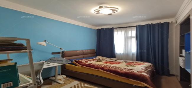 次臥是改造后的兒童房,通過墻體的后移增大了內部使用空間,留出了書桌書架的位置,便于孩子學習。