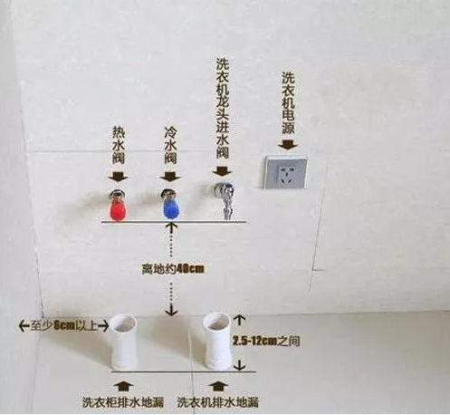 4.陽臺安裝洗衣柜要提前規劃好水電管路,預留好冷熱水管、插座、電源等,洗衣機擺放位置不要鋪設水電,可以裝在水槽下面。