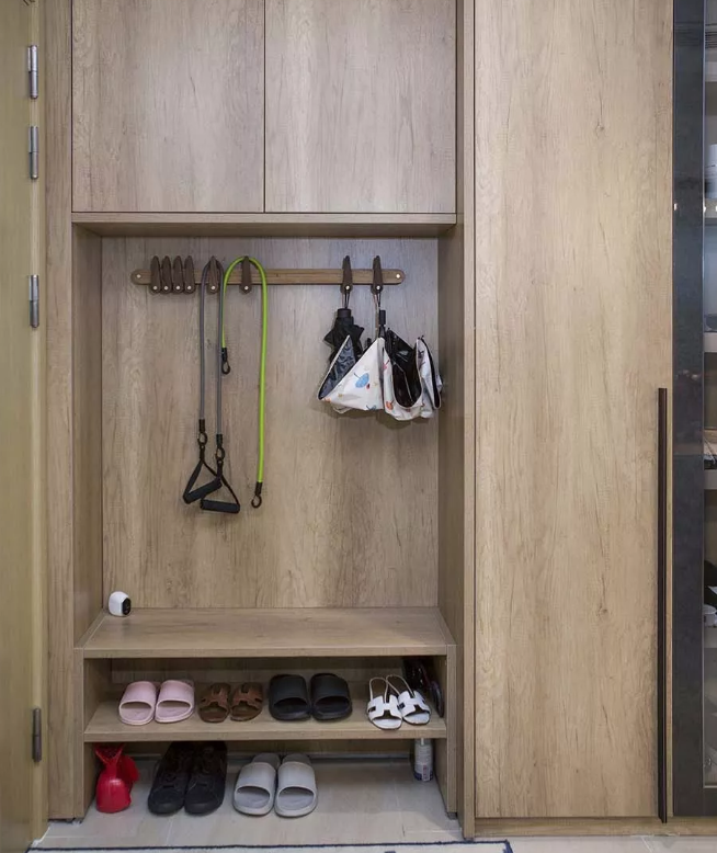 第一,底部留空可以放置常換的鞋子,比如拖鞋、第二天出門要穿的鞋子,這樣不僅能養成進門換鞋的好習慣,穿換的時候也方便找尋,最重要的是還保持了室內的干凈整潔,能給自己、家人以及客人留下一個好的印象。