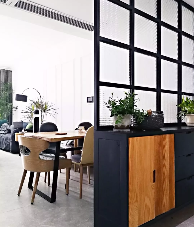 做隔斷在家里還是比較常見的,比如玄關和客廳、客廳和餐廳、客廳和陽臺、餐廳和廚房等等,這樣既能有明顯的功能分區,也不會顯得家里過于凌亂。不過,單一砌墻做隔斷的方法,已經out了,不僅會影響到采光,還會讓空間顯得狹小逼仄。