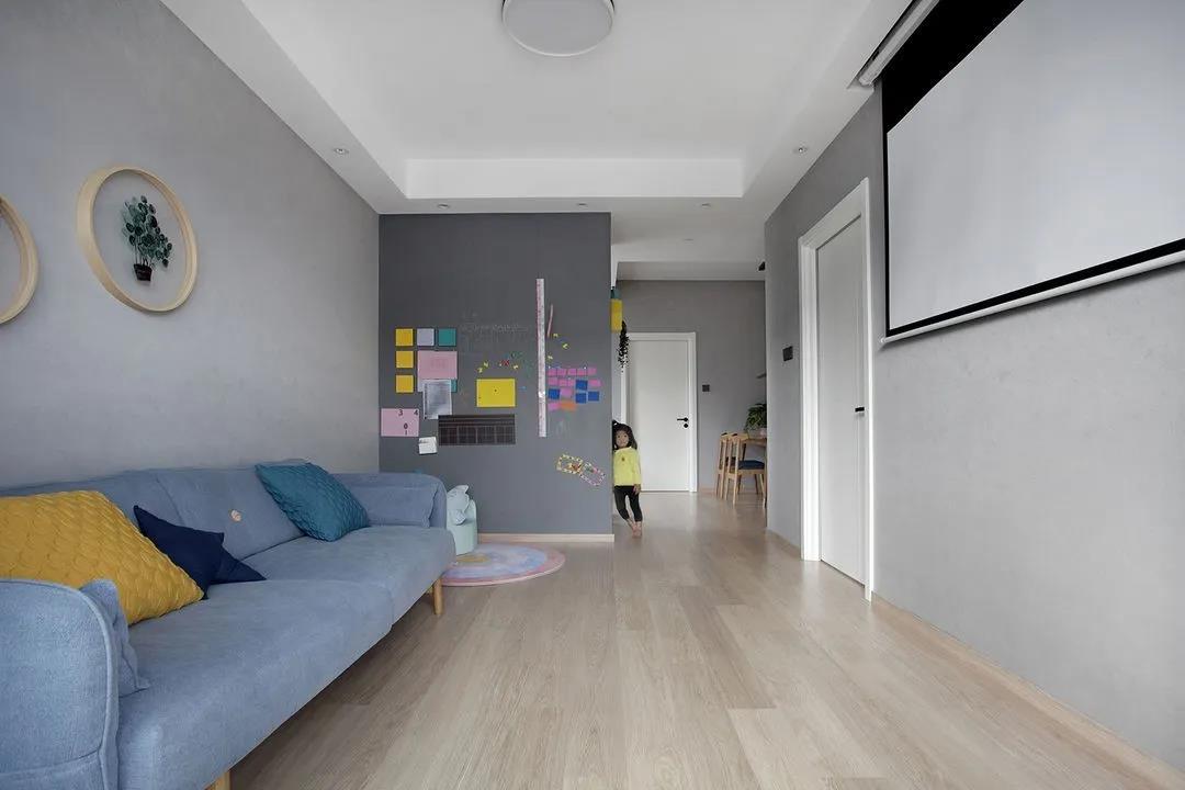 小朋友的世界是多彩的,所以沙發(fā)選用淺藍(lán)色,搭配黃色的抱枕,添置綠植,家里滿滿的活力。
