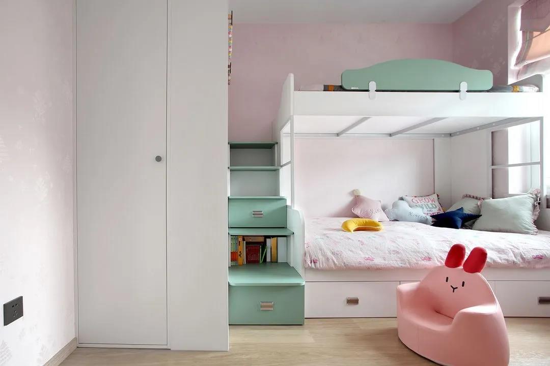 次臥是兩個(gè)小公主的房間,薄荷綠+少女粉,撲面而來(lái)的童真氣息。