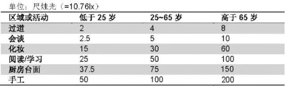 了解過燈光的位置設計,來看看家中需要多亮的燈。不同的年齡分區,對照明度的需求也不同。年齡越大,光照值越高。總之,燈光雖然不起眼,但卻大大提升了幸福感。